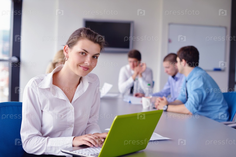 Бизнес-леди с ее сотрудниками в офисе