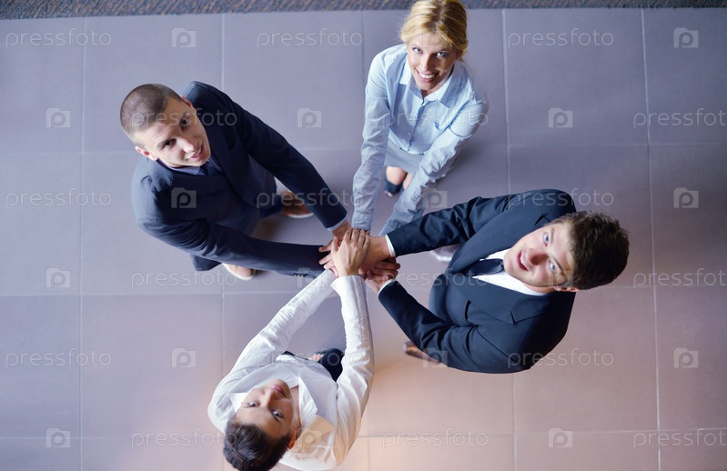 Группа деловых людей стоит, взявшись за руки