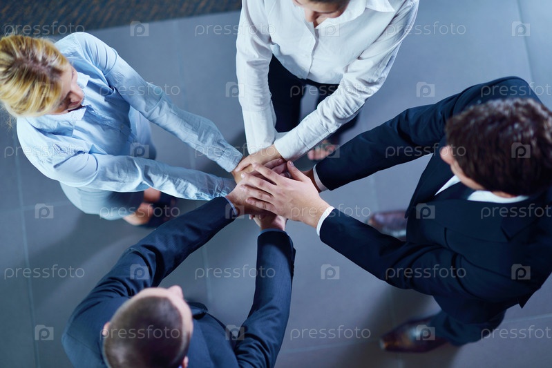 Группа деловых людей стоит, взявшись за руки