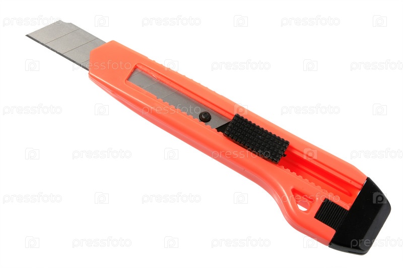 Оранжевый нож для бумаги на белом фоне
