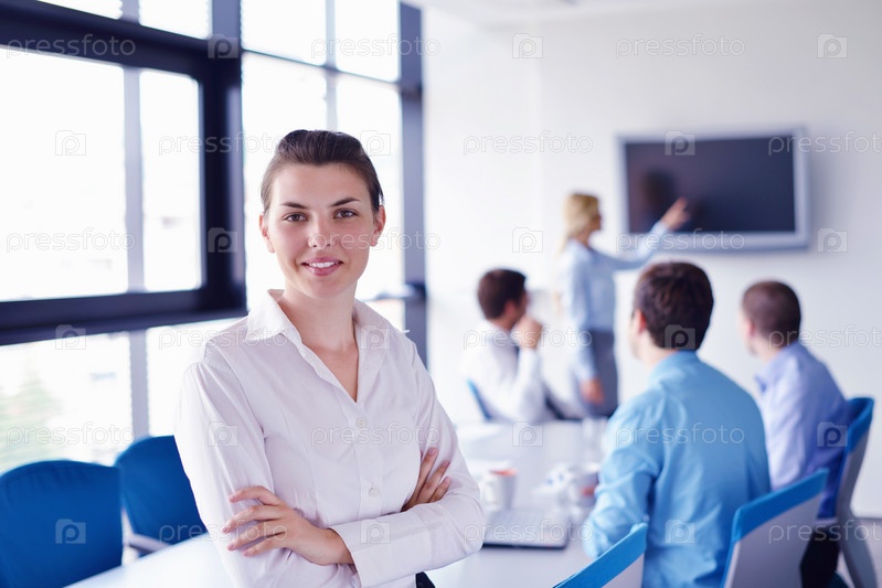 Бизнес-леди с коллегами в офисе
