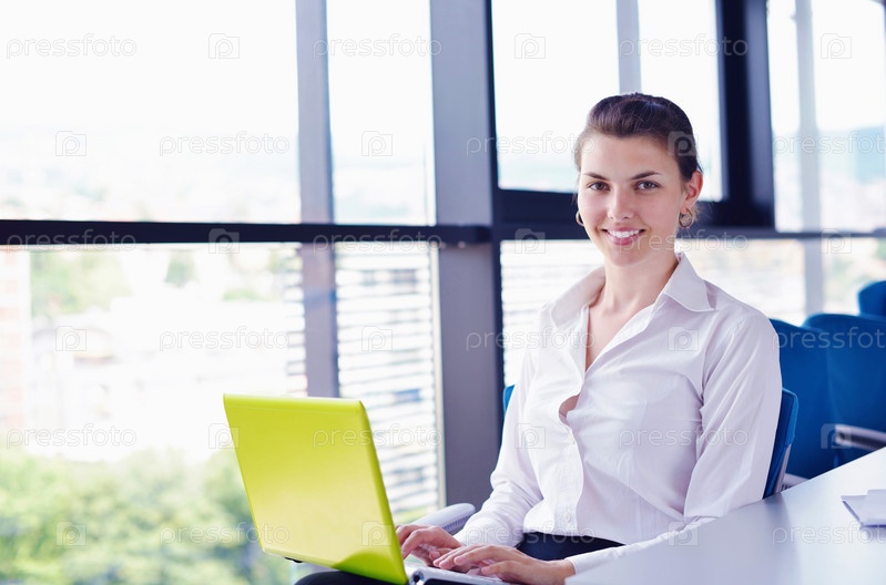 Молодая красивая бизнес-леди с ноутбуком в офисе