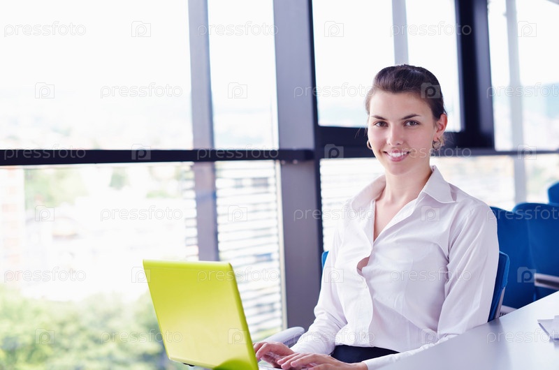 Молодая красивая бизнес-леди с ноутбуком в офисе