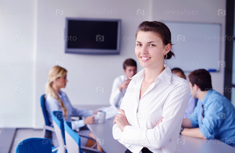 Бизнес-леди с ее сотрудниками в офисе