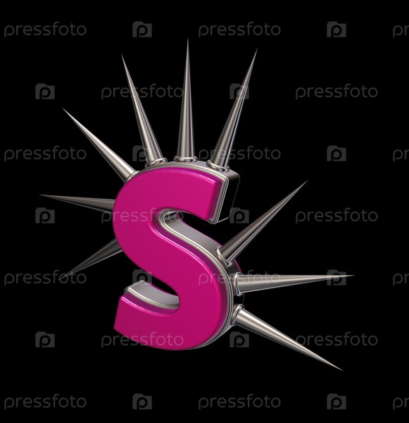 Буква s с металлическими шипами на черном фоне - 3d иллюстрация