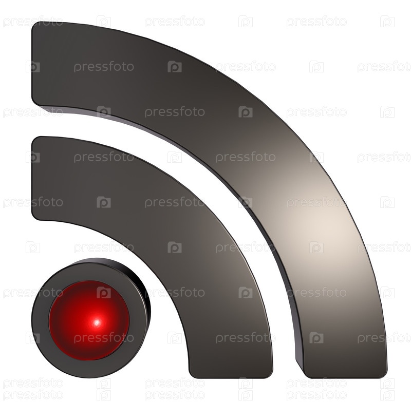 Металлический символ RSS на белом фоне - 3d иллюстрация