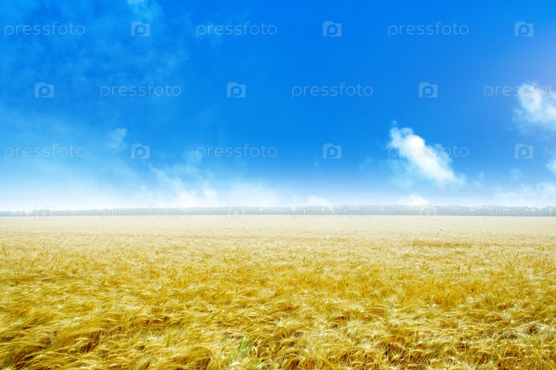 Поле спелой пшеницы под солнечным небом