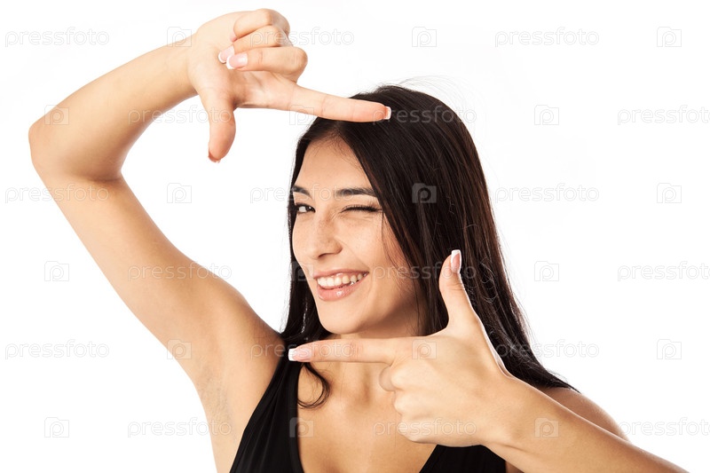 Молодая красивая женщина делает кадр руками