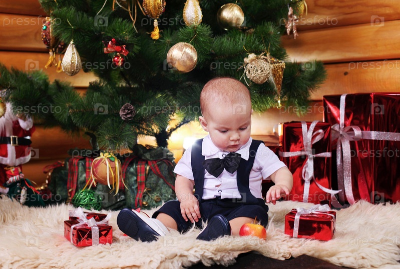 Милый мальчик с рождественскими подарками