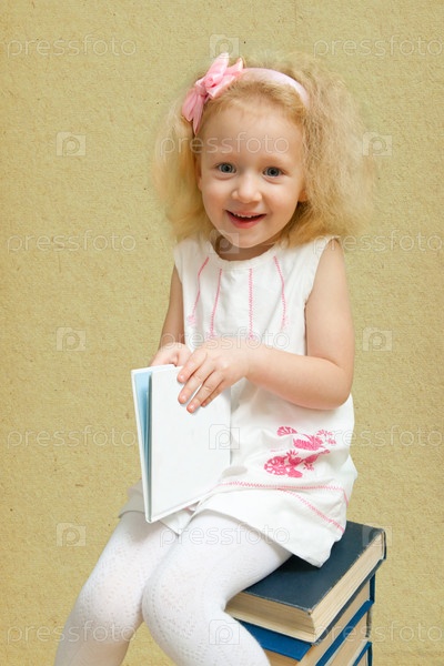 Маленькая улыбчивая девочка со светлыми волосами играет