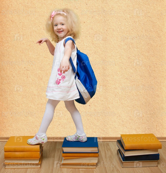 Маленькая улыбчивая девочка со светлыми волосами играет