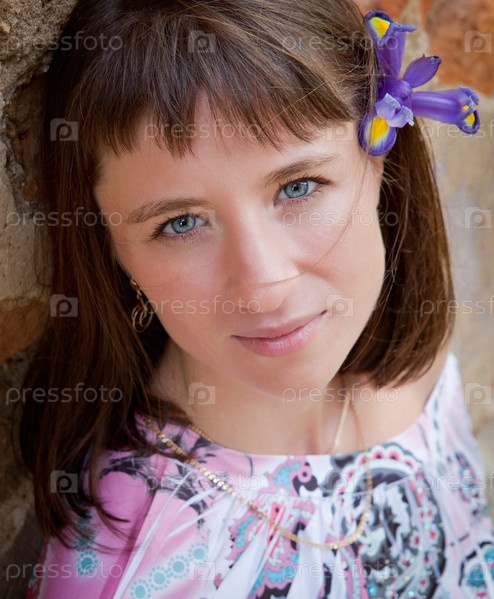 Молодая брюнетка с ирисом в волосах