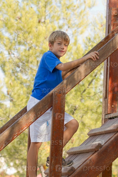 Мальчик на лестнице на игровой площадке