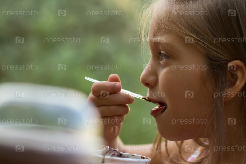 Маленькая девочка ест мороженое