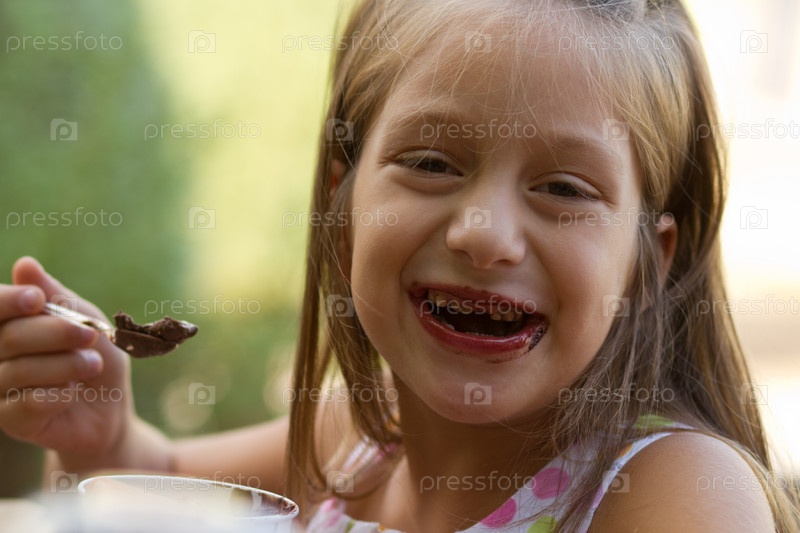Маленькая девочка ест мороженое