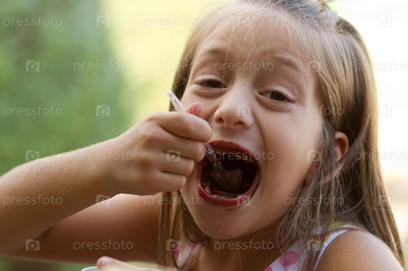 Маленькая девочка ест мороженое
