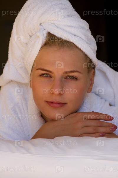 Блондинка с полотенцем на голове