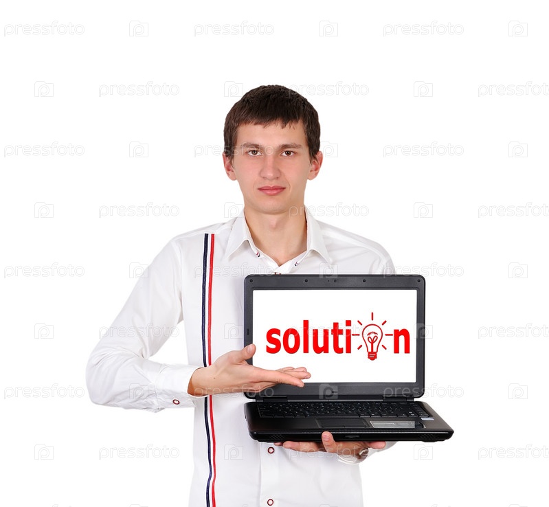 Молодой человек с ноутбуком в руках