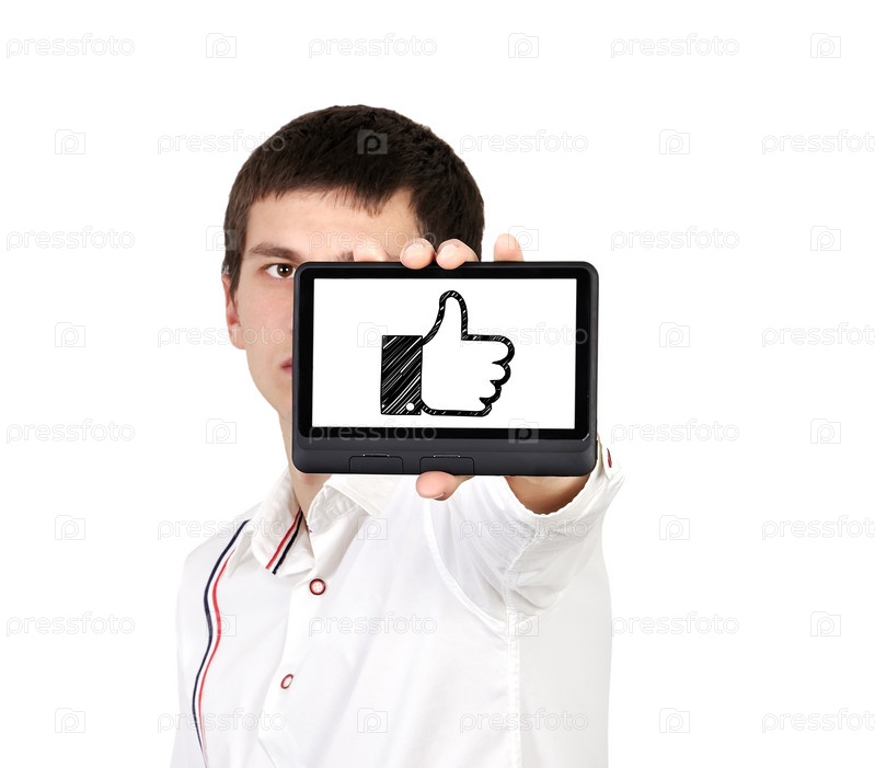 Молодой человек с планшетным компьютером в руках