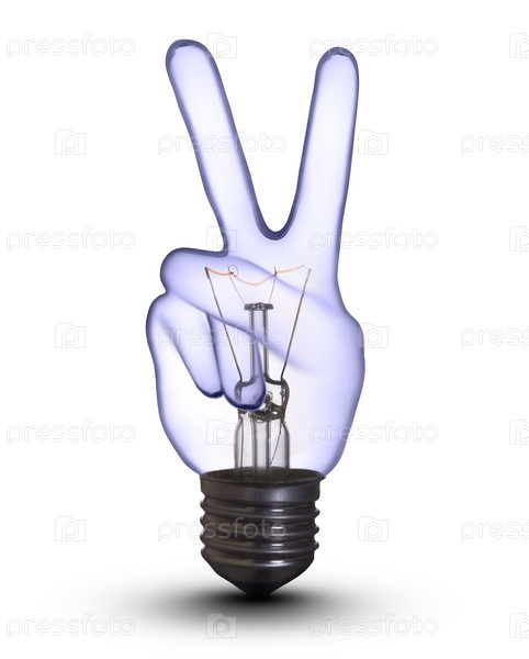 Лампа в форме символа победы на белом фоне, изолировано