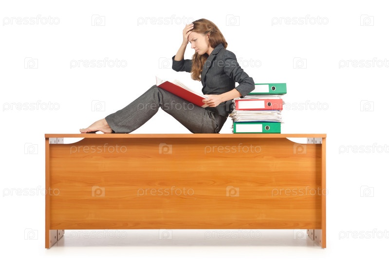 Занятая деловая женщина, изолированная на белом фоне