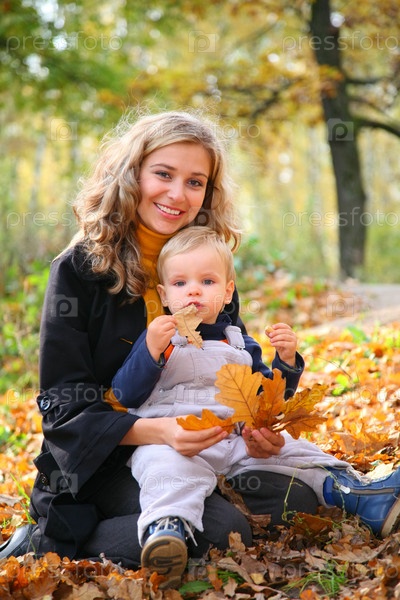 Мать с сыном в лесу