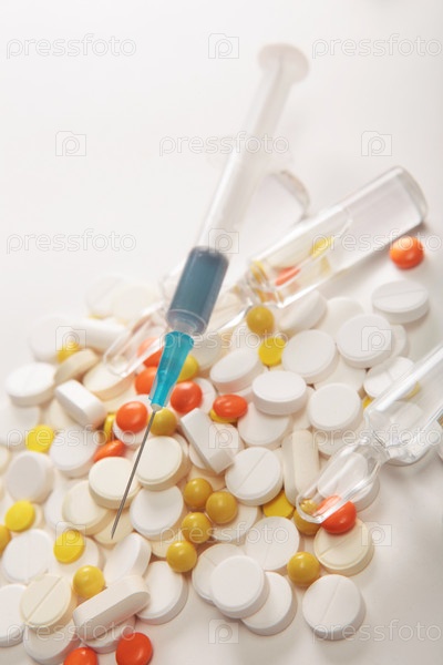 Шприц на фоне таблеток