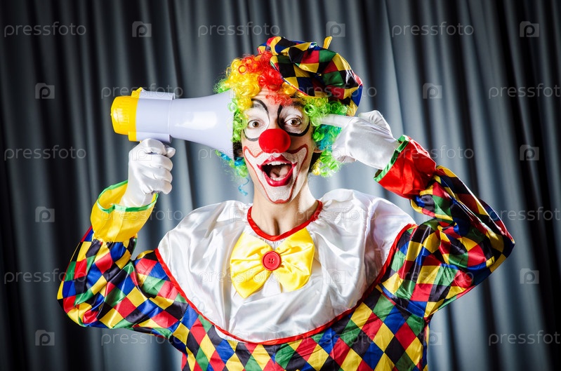 Клоун в студии с громкоговорителем
