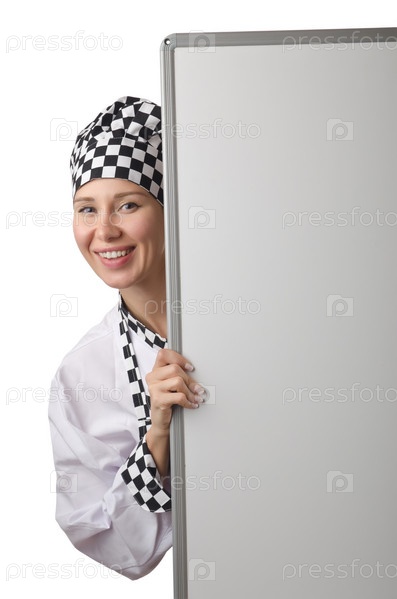 Повар с пустым баннером