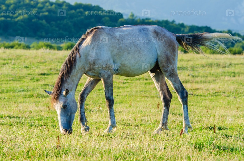 Одинокая лошадь на лугу