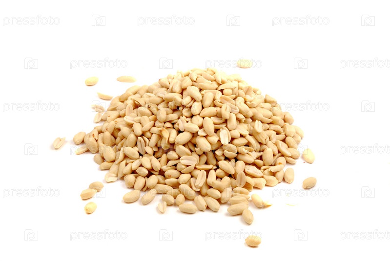 Жареный арахис золотистого цвета на белом фоне