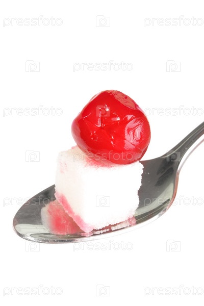 Замороженная ягода вишни на кусочке сахара
