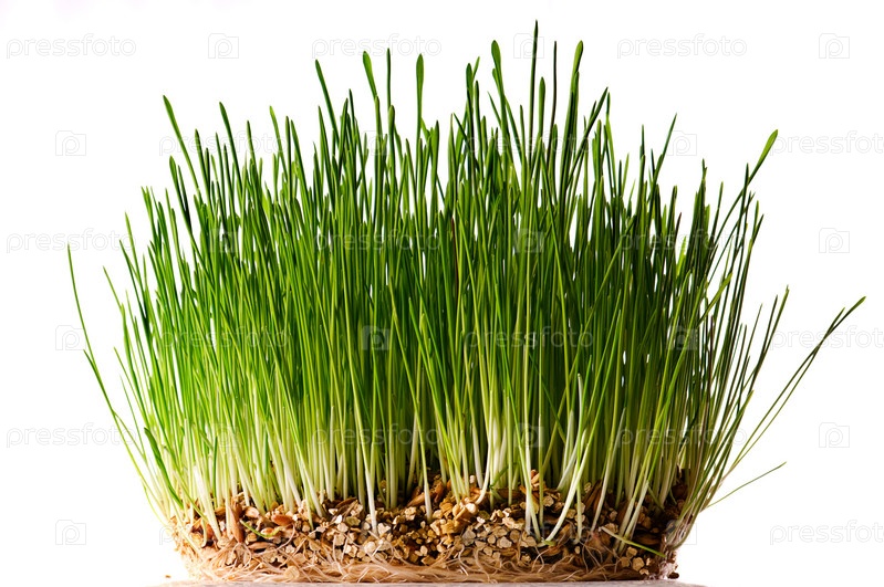зеленая трава на белом фоне