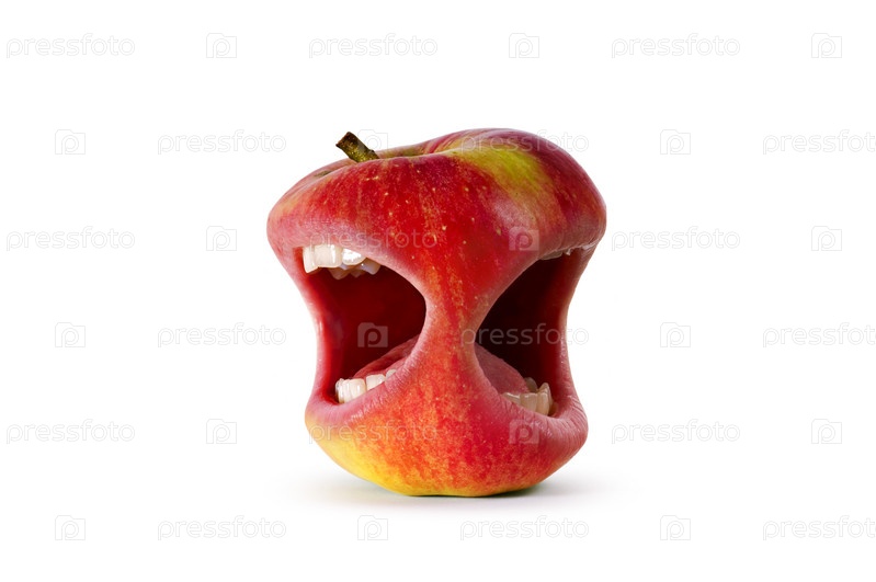 Красное сердитое яблоко со ртом