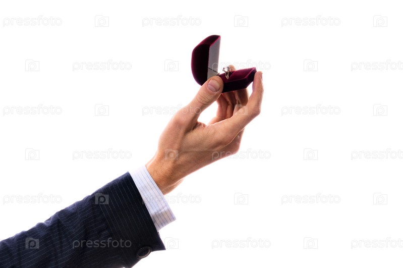 Рука с кольцом на белом фоне