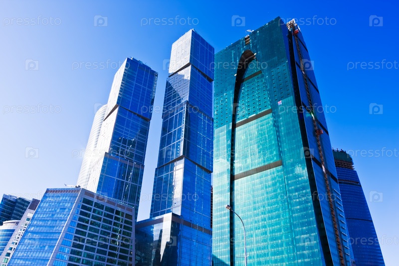 Современные небоскребы под голубым небом