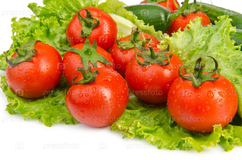 Свежие овощи с листьями салата