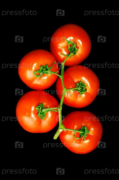 Ветка из пяти помидоров на черном фоне