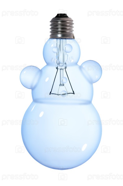 Вольфрамовая лампочка в форме снеговика на белом фоне