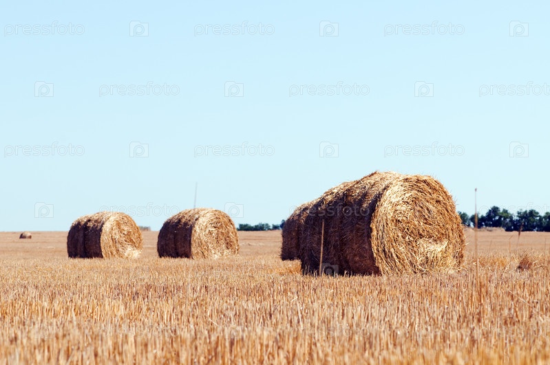 Сельский пейзаж с копнами сена