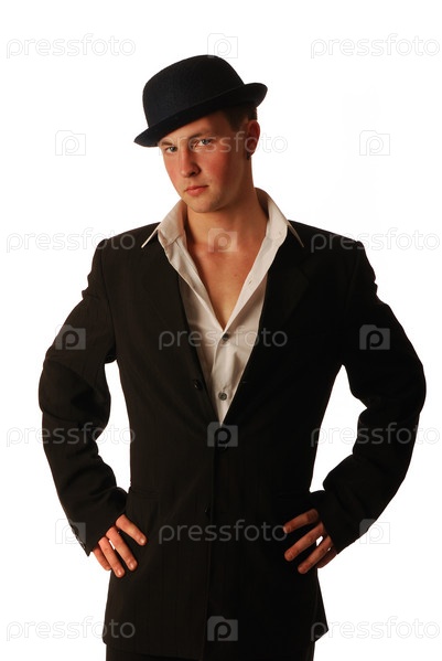 Молодой человек в костюме и мягкой фетровой шляпе