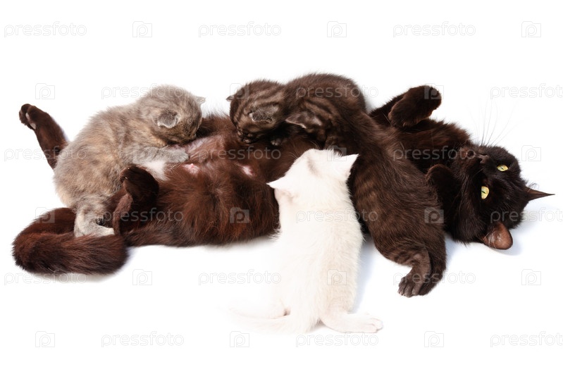 Кошка кормит котят