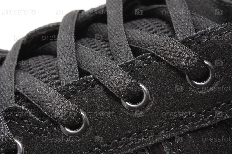 Шнуровка на черном ботинке крупным планом