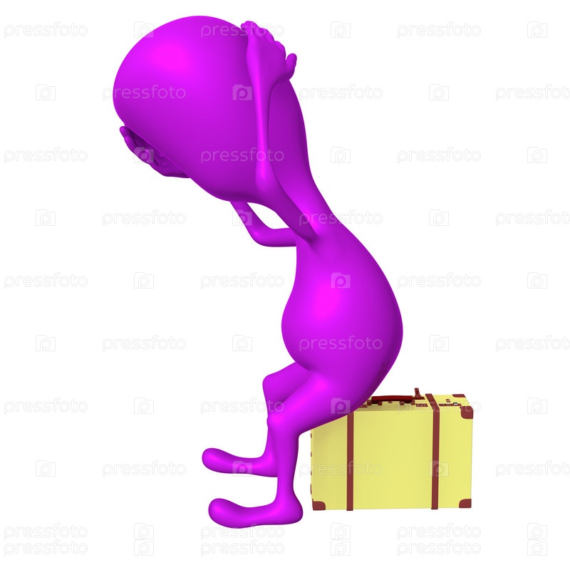 Кукла чувствует себя плохо, сидя на небольшом чемодане
