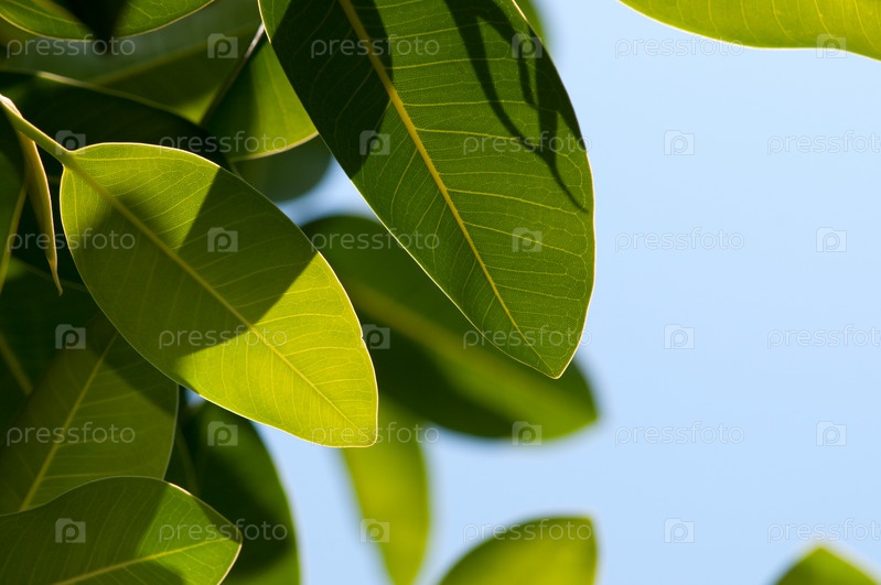 Листья магнолии на фоне голубого неба с пространством для текста