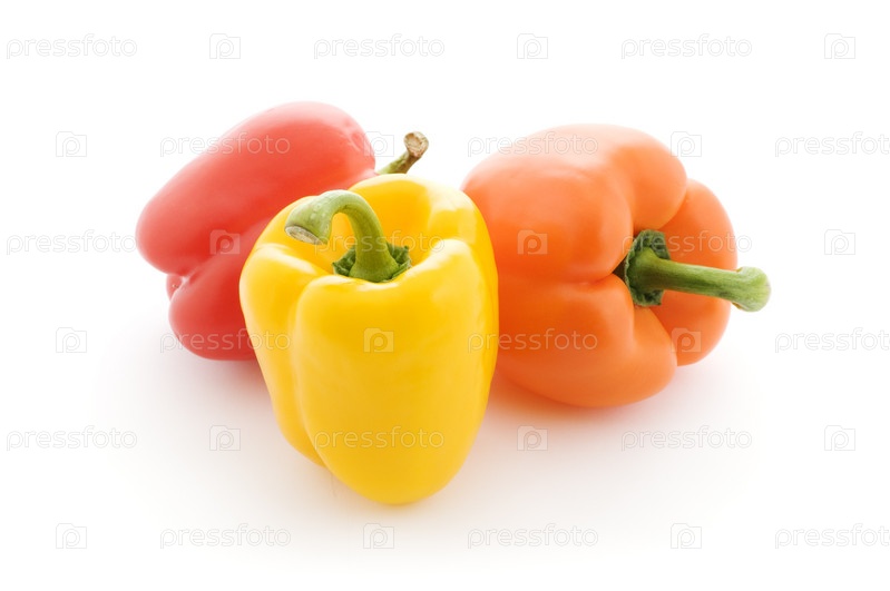 Красный, оранжевый и желтый перец на белом