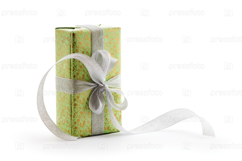 Зеленая подарочная коробка с серебряной лентой