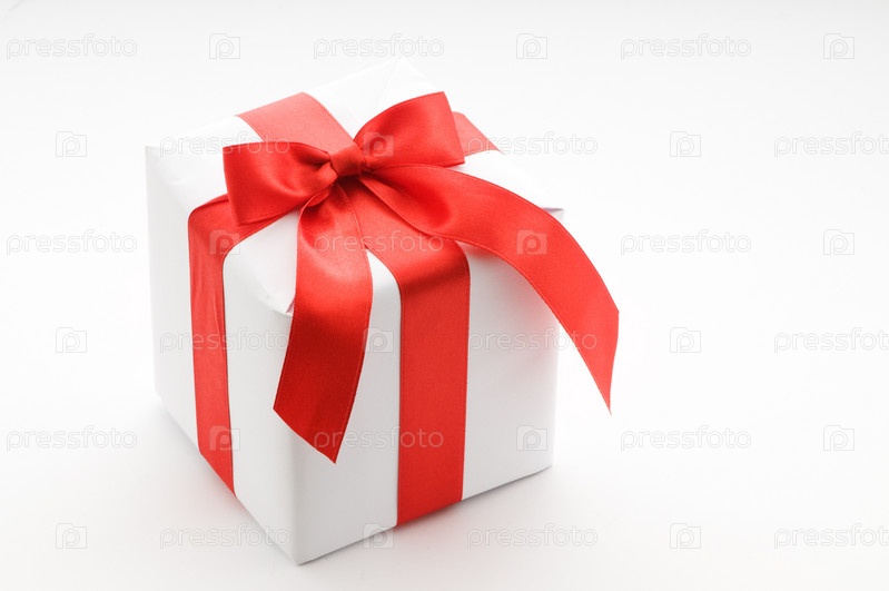 Белый подарок с красной лентой