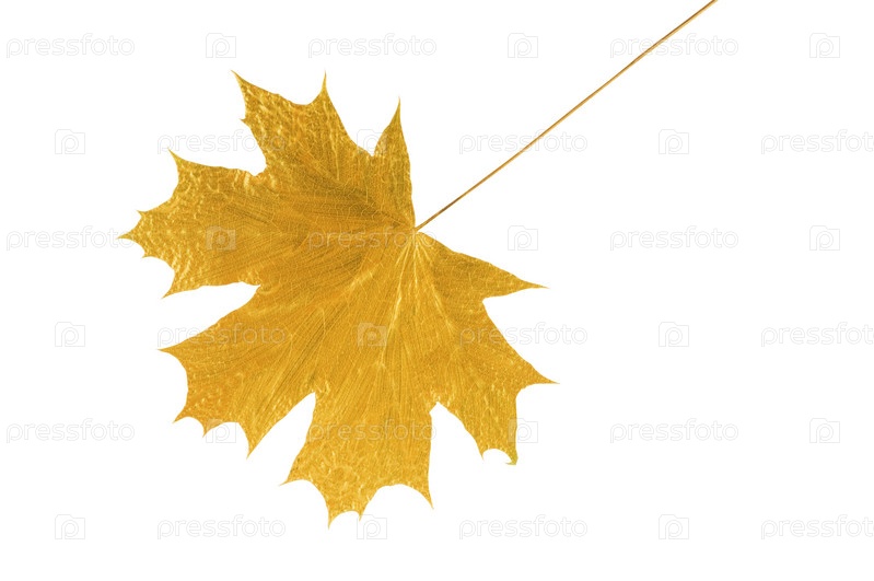 Золотой кленовый лист на белом фоне