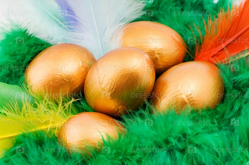 Пасхальная декоративная композиция с золотыми яйцами